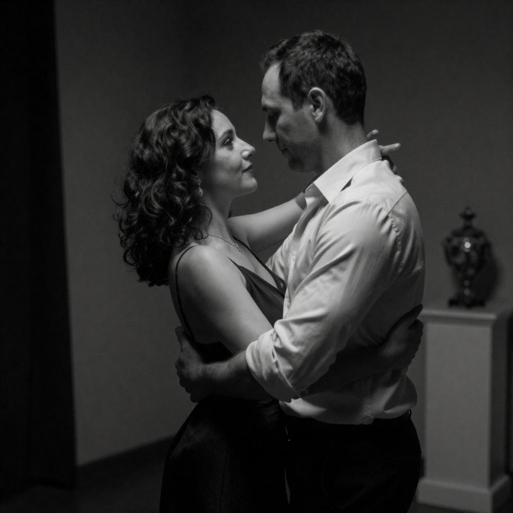 Black-and-White Couple Dancing in Kitchen
