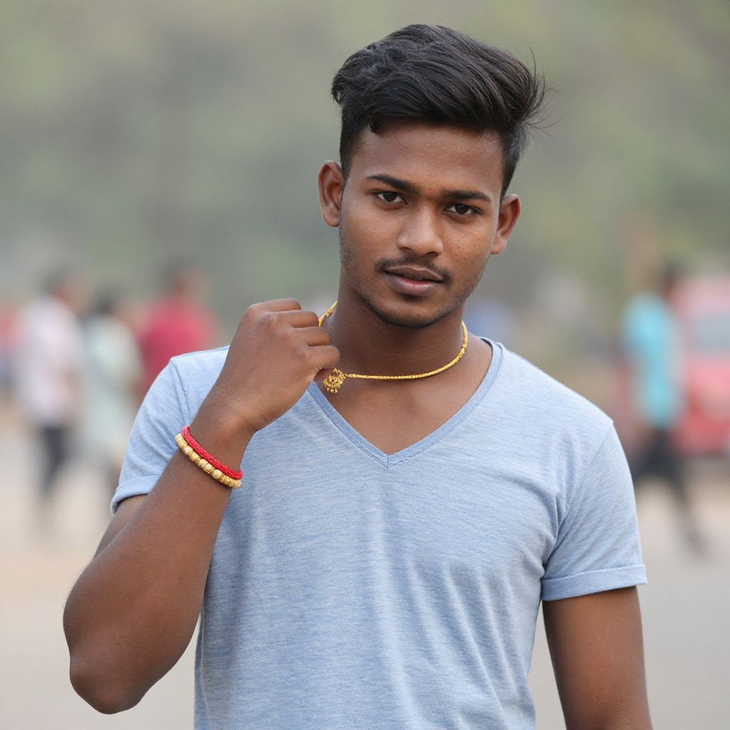 "funny indian costume, 1boy, male focus, solo, necklace, jewelry, bracelet, looking at viewer, outdoors, dark skin, dark-skinned male, blurry background Realistic photo of casual sexy person with pretty face"