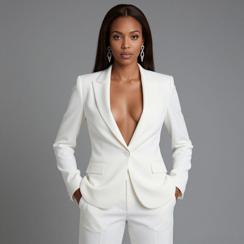 Photorealistic Woman in White Suit