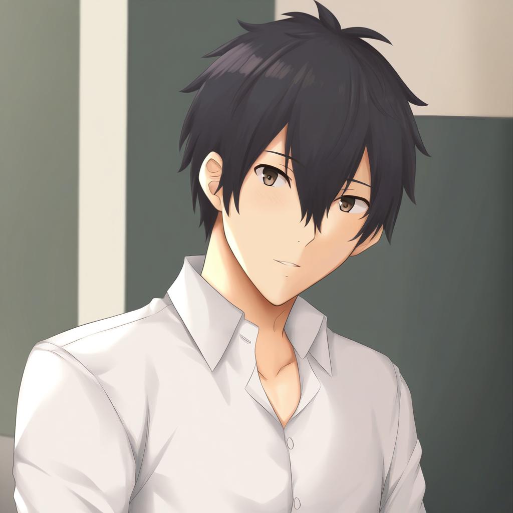 Murata ugetsu, given, 1boy, hair between eyes, black eyes, black hair, short hair, collared shirt, white shirt, long sleeves, by artist noto kurumi, leet