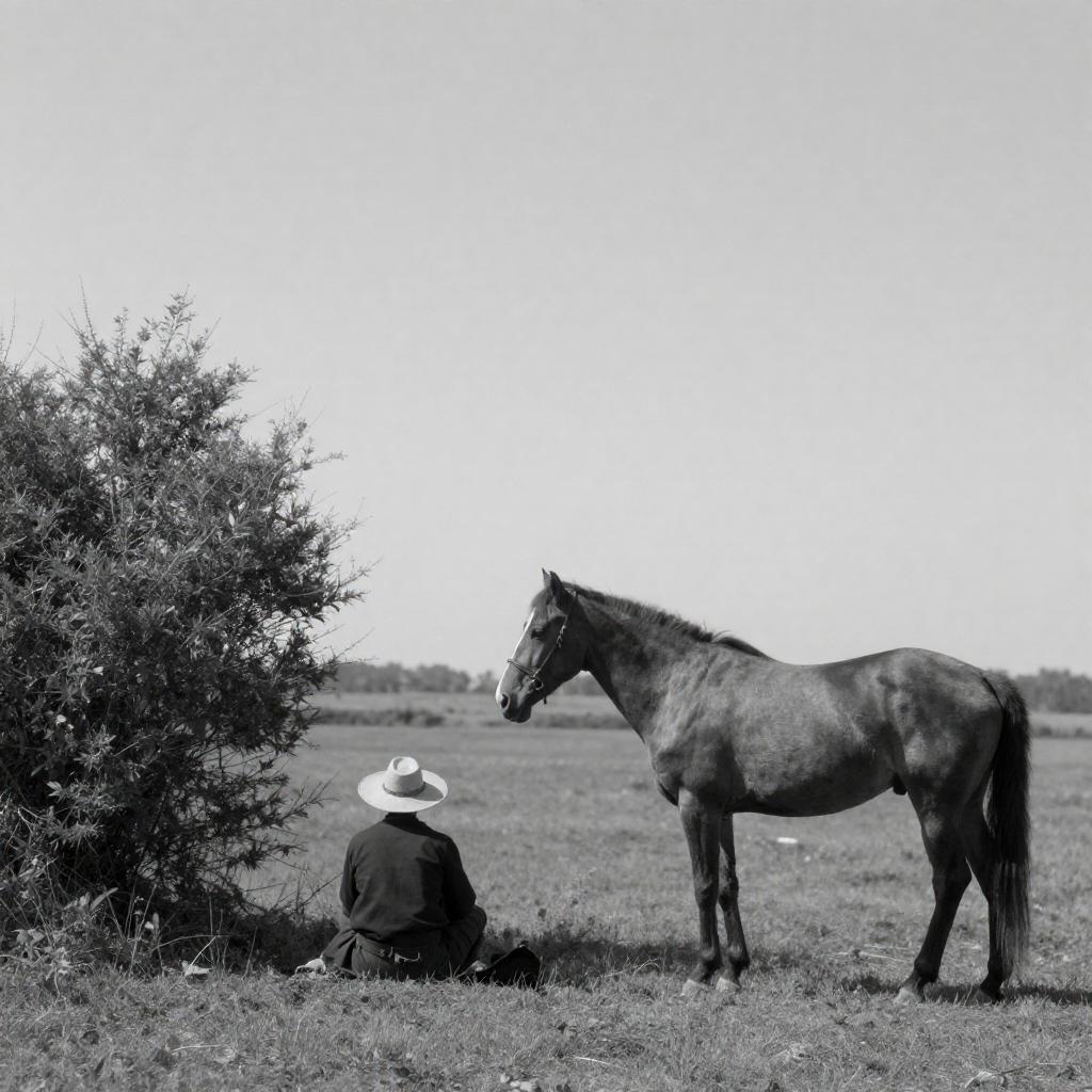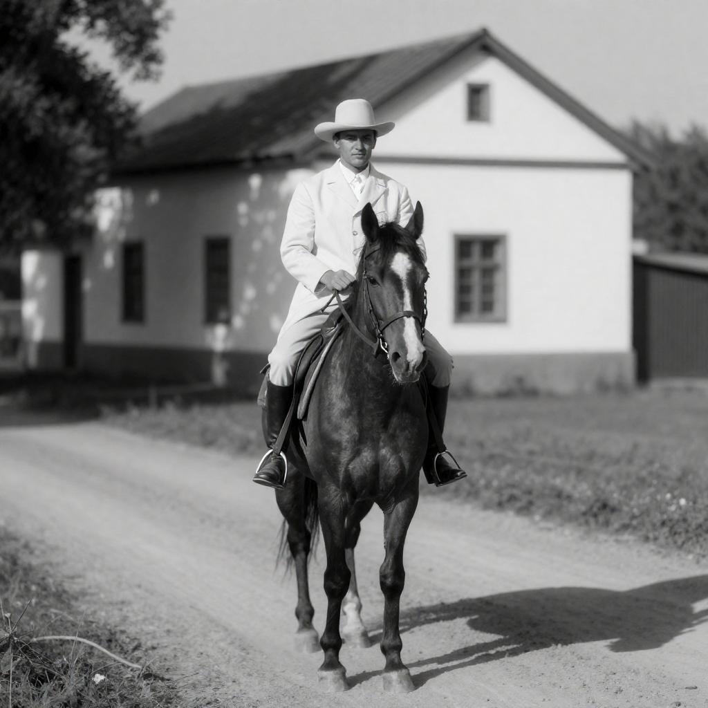 Black-and-White Rural Horse and Figure