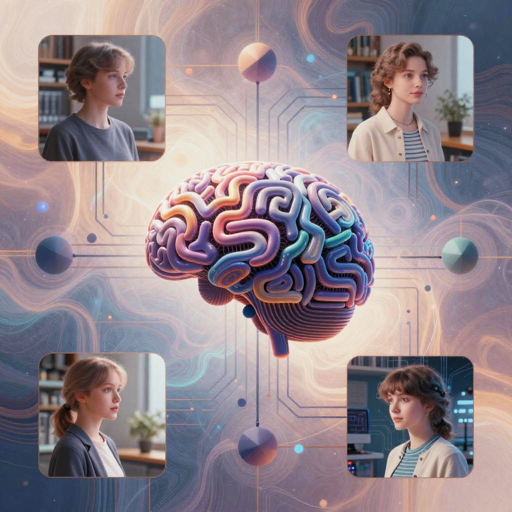 AI combine images visualizing advanced machine learning algorithms fusing artistic photographs, abstract patterns, and geometric shapes, rich color palette, ethereal and dreamy atmosphere, high detail, representing digital creativity and synthesis