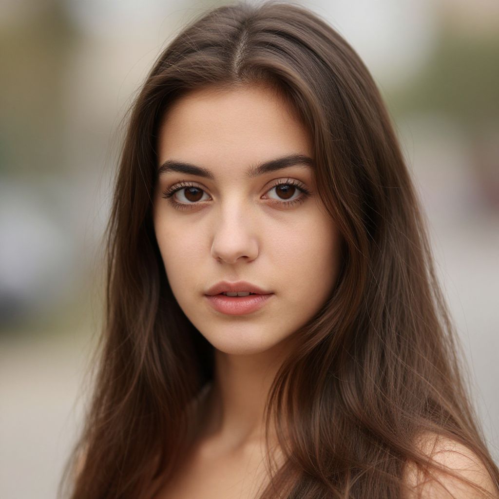 "dolores encanto costume, 1girl, solo, brown hair, long hair, realistic, looking at viewer, blurry background, blurry, brown eyes, outdoors, lips Realistic photo of casual sexy person with pretty face"