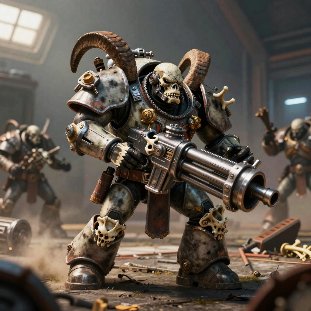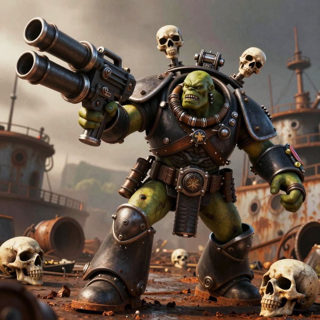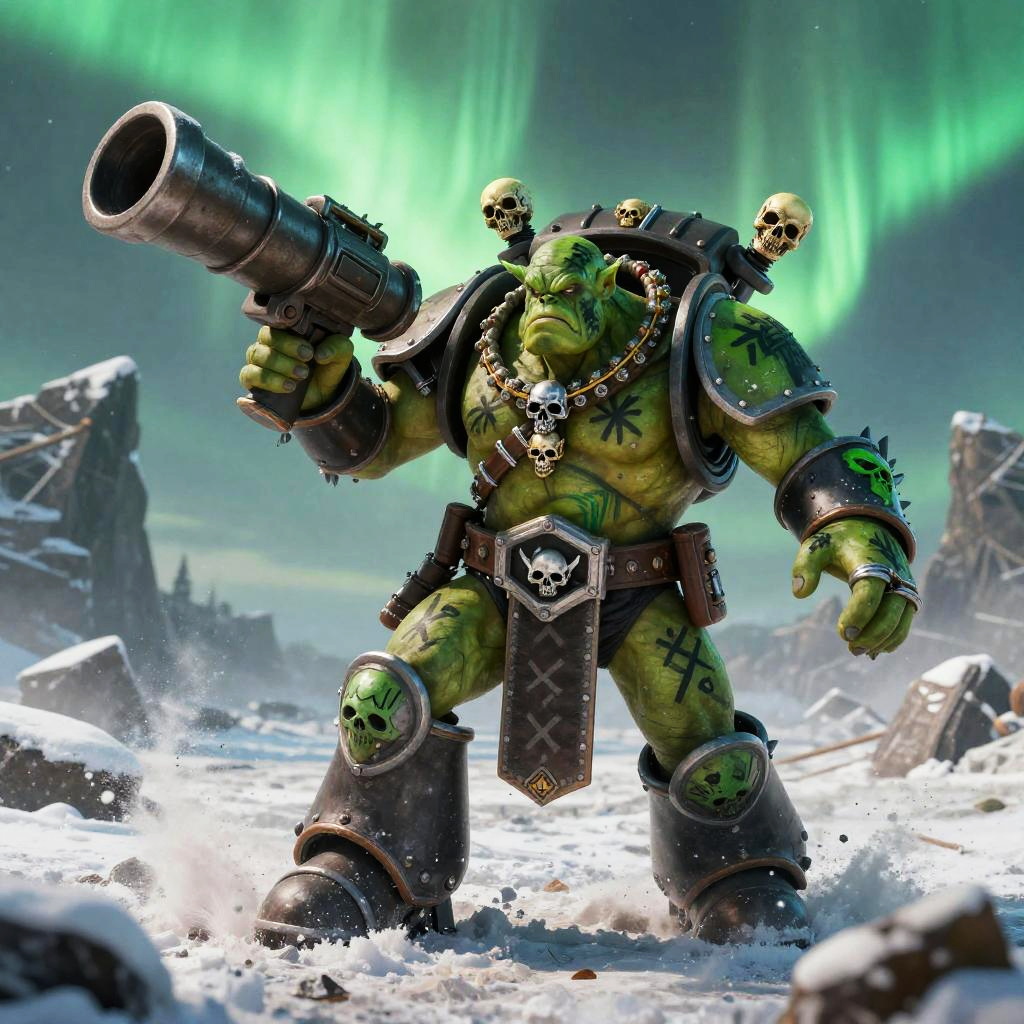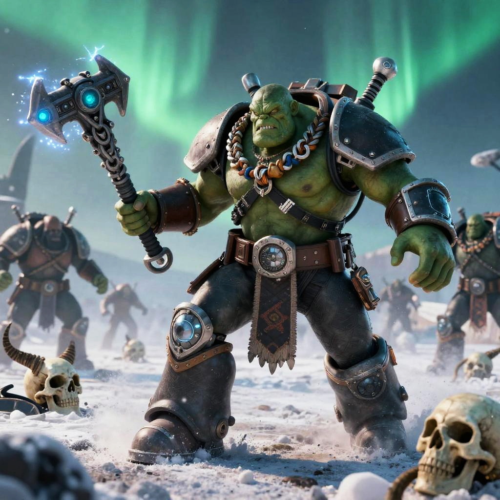 Ork Warlord Charging Through Molten Foundry