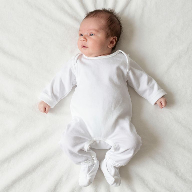 Snow White Newborn Outfit, baby girl in white outfit laying on a blanket