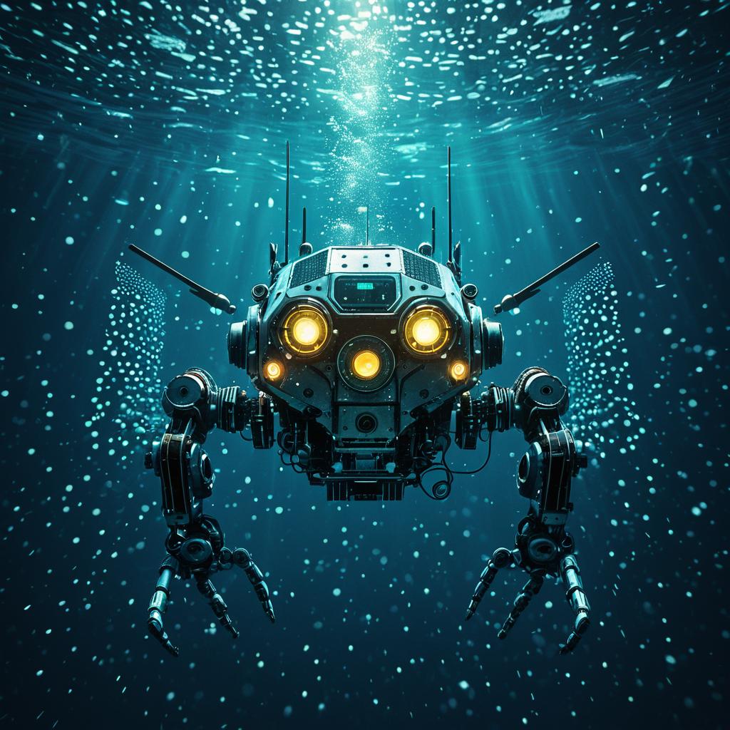 3D glass rendering of an android ballerina emerging from a glowing grid. The design includes iridescent lights, with surreal lighting and abstract 3D elements creating a high-energy, dynamic composition.