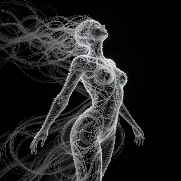 Water art in the shape of a womens body, on the ocean water, water art, futuristic, glowing, hyper realistic, ray tracing, realistic water splashes, sharp focus, long shot, 8 k resolution, cinematic