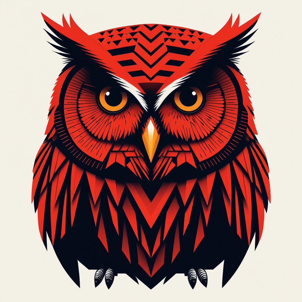 Red Geometric Owl Illustration