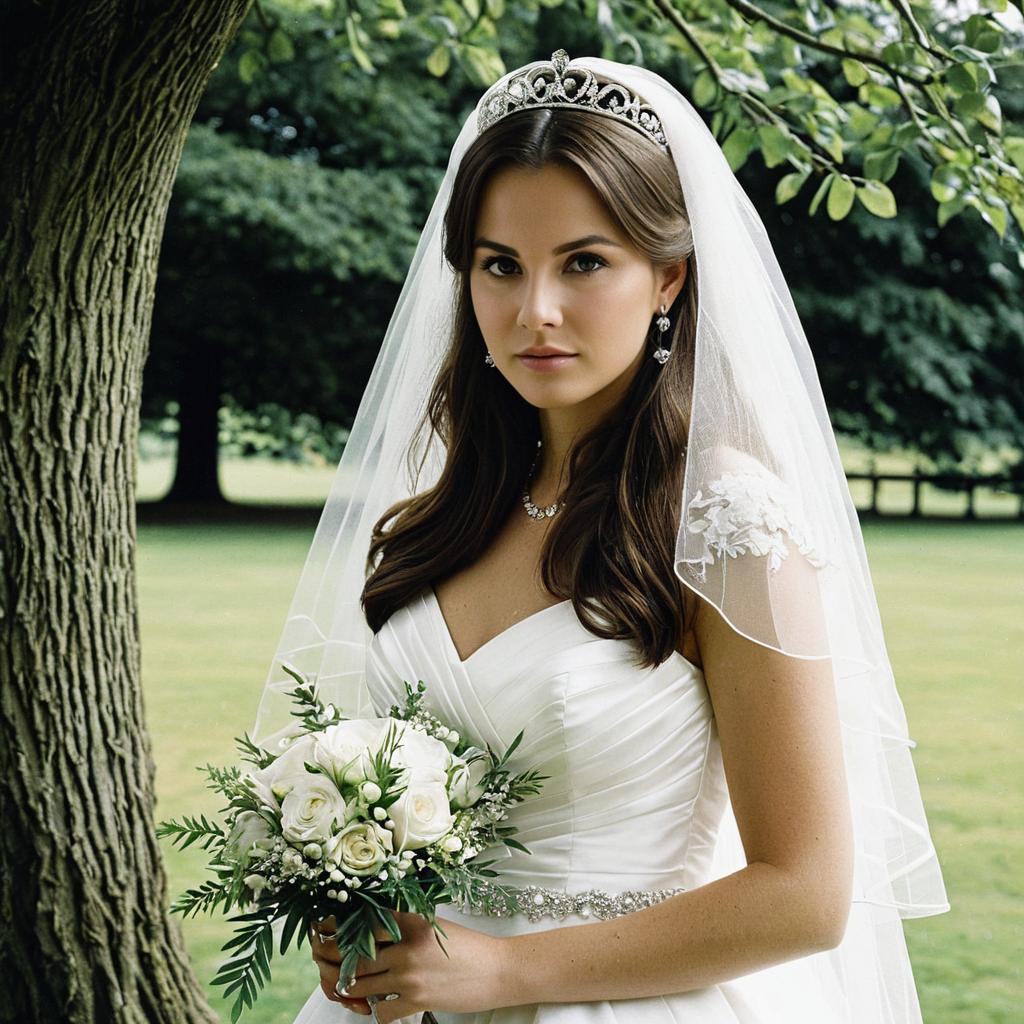 White bride costume dress,1girl, dress, solo, white dress, long hair, flower, realistic, field, brown hair, outdoors, blonde hair, sleeveless