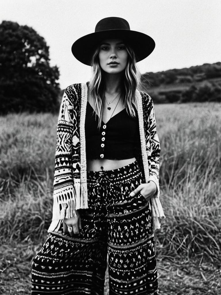 Fashionable Woman in Trench Coat and Wide-Brimmed Hat