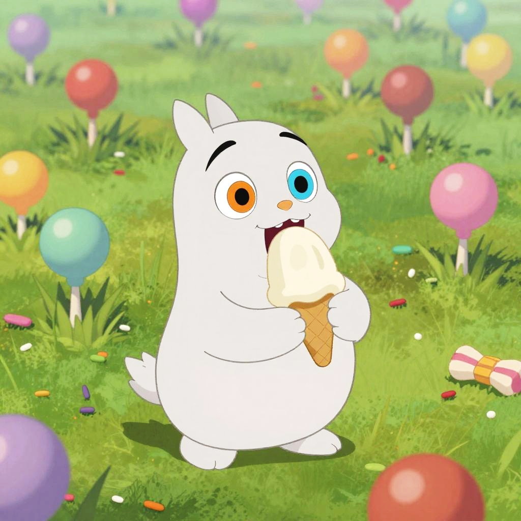Animated Lemming Holding Ice Cream in Candy Meadow