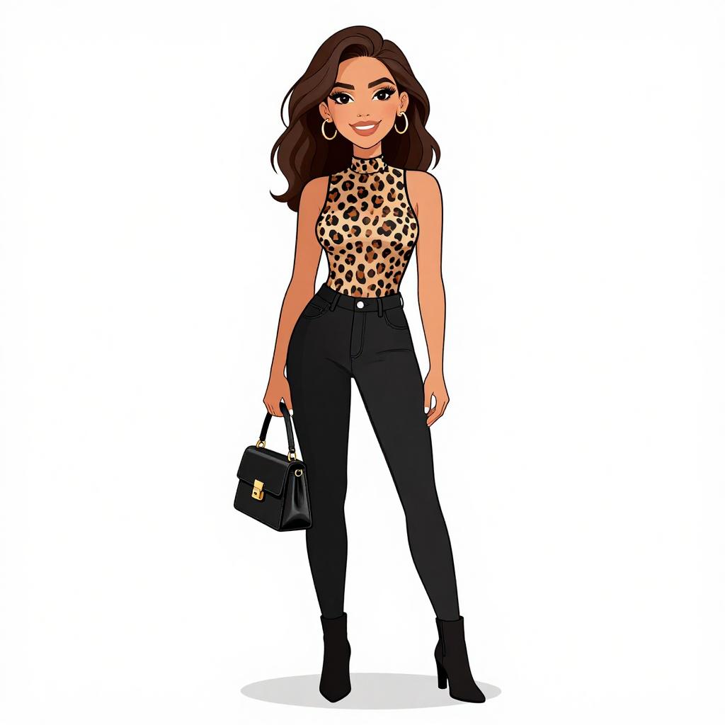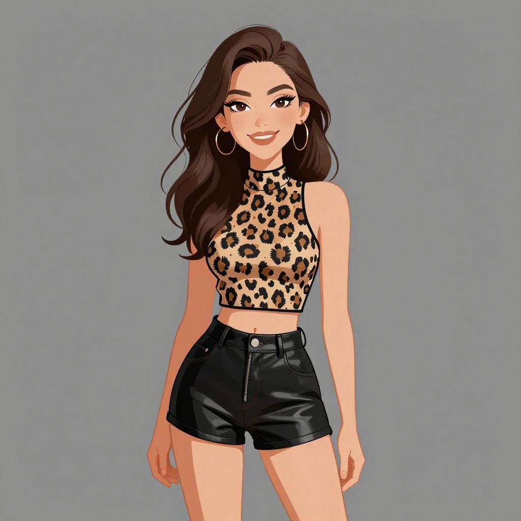 Smiling Woman in Chic Animal Print Dress