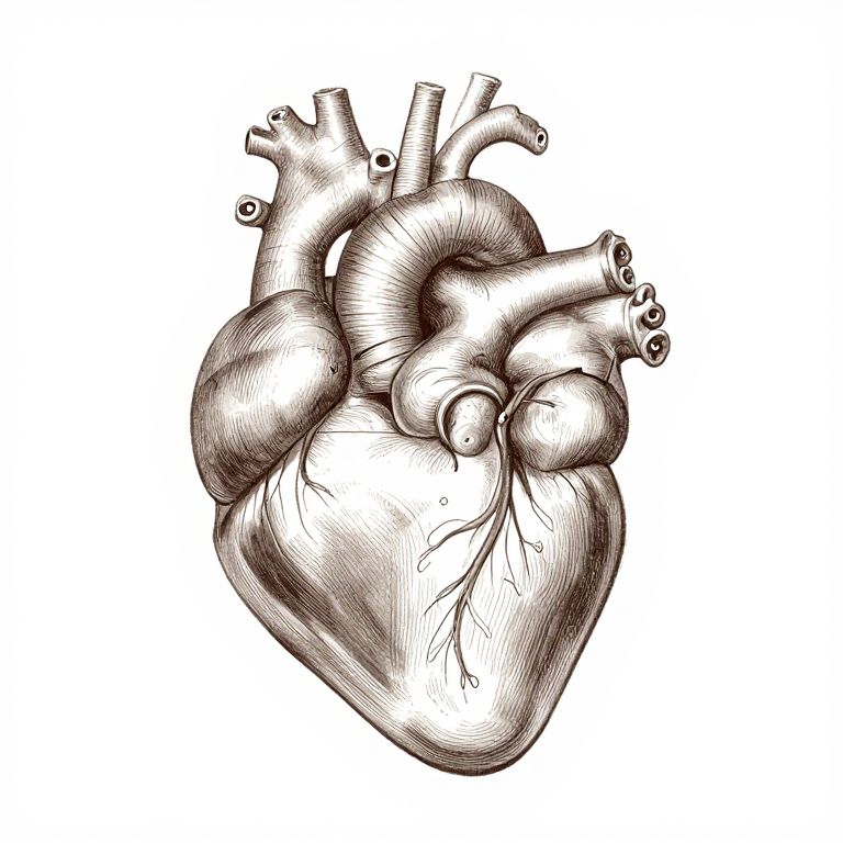 Heart anatomically correct, vintage anatomical drawing style, sepia tones with fine pen strokes, labeled parts for educational purposes, scientific journal illustration, clean white background, intricate anatomical detail and shading