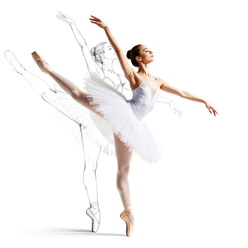 Sketch to photo of a graceful ballet dancer mid-pose, delicate pencil outlines gradually transforming into a lifelike color photograph emphasizing movement, fabric textures, and emotional expression in performing arts.