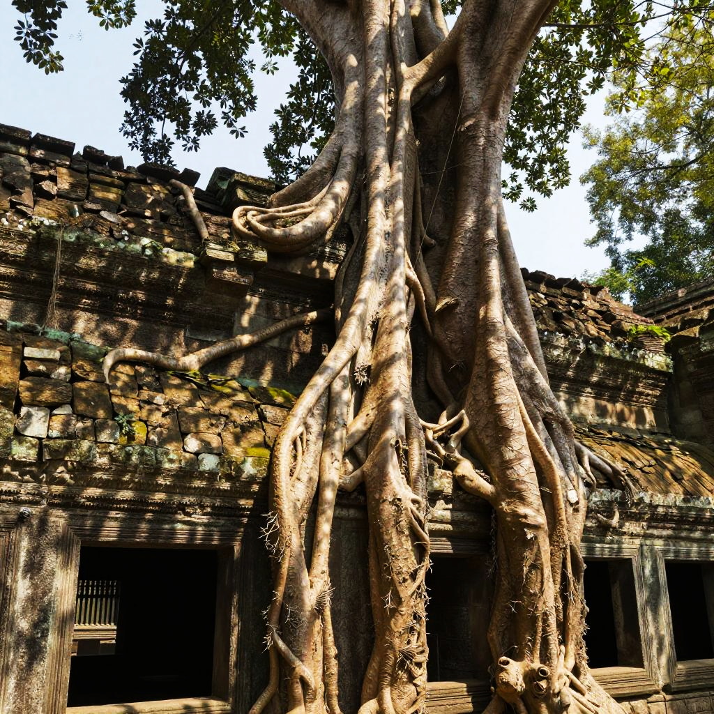 Ancient Stone Building Embraced by Roots