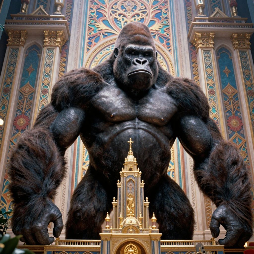 Cinematic Muscular Gorilla Among Buildings