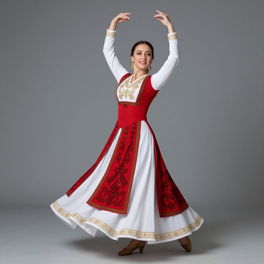 Turkish Dance Costume, woman in traditional dress with a red and white dress