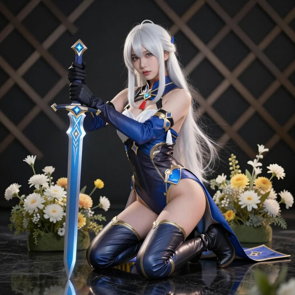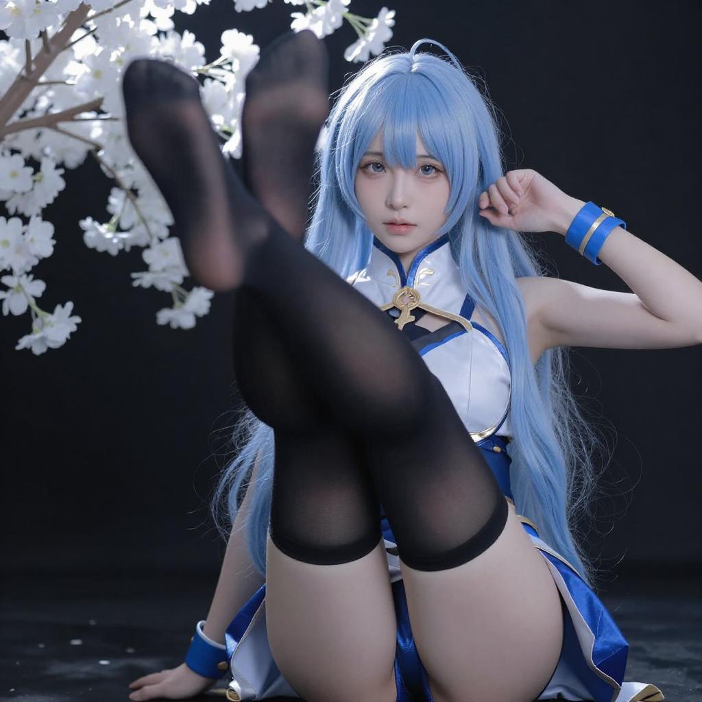 Blue-Haired Elf Cosplayer Artwork