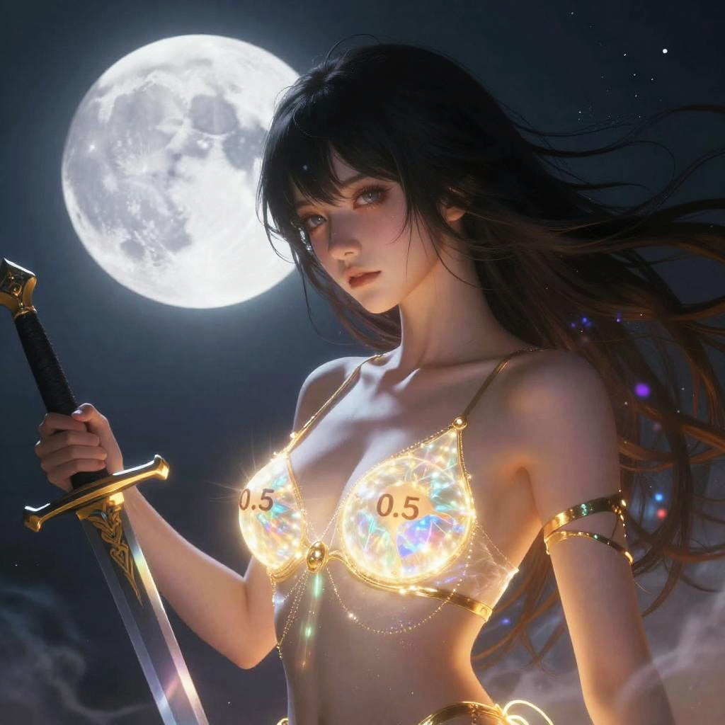 (moon:1.4), (bare shoulders:0.85), ((nude:1)), (boobs naked:0.55), (Glowing ambiance, enchanting radiance, luminous lighting, ethereal atmosphere, mesmerizing glow, evocative hues, captivating coloration, dramatic lighting, enchanting aura), (1girl:1.4), ((solo)), masterpiece, best quality, 1girl, (holding a long sword in hand), (in smoke:1.1), (dynamic smokeanywhere:1.4), (upper body:1.2), ((nipples:0.55)), girl with a weak temperament, cinematiclighting, (gold trim:1), ((illustration)), ((floating hair)), dynamic angle, ((((full body)))), (1 female), detailed face, asymmetrical bangs, (beautiful detailed eyes), ((colorful refraction)), (beautiful detailed sky), (((Life optical flow))), ((dark intense shadows)), ((cinematic lighting)), (expressionless), ((sharp focus)), (((masterpiece))), (((best quality))), epic cinematic, soft nature lights, rim light, absurd, amazing, funny, itricate, hyper detailed, ultra realistic, soft colors, pink flowers, (moon)