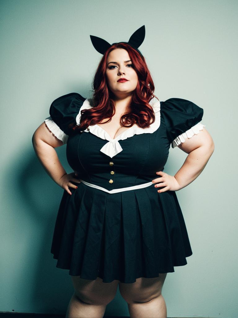Woman in Plus Size costume, cosplay editorial photography, realistic tones