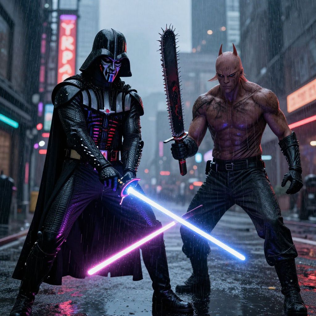 Cyberpunk Duel: Darth Maul Vs Chainsaw Man