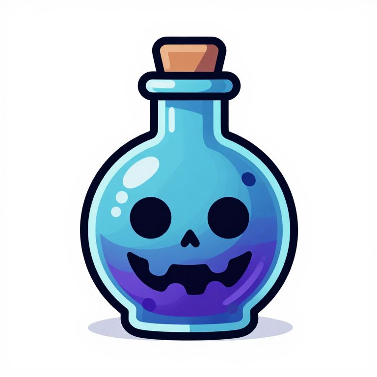 Technocracy simple logo of a video game style red potion with smiling face with triangle eyes, flat icon style, symmetrical,