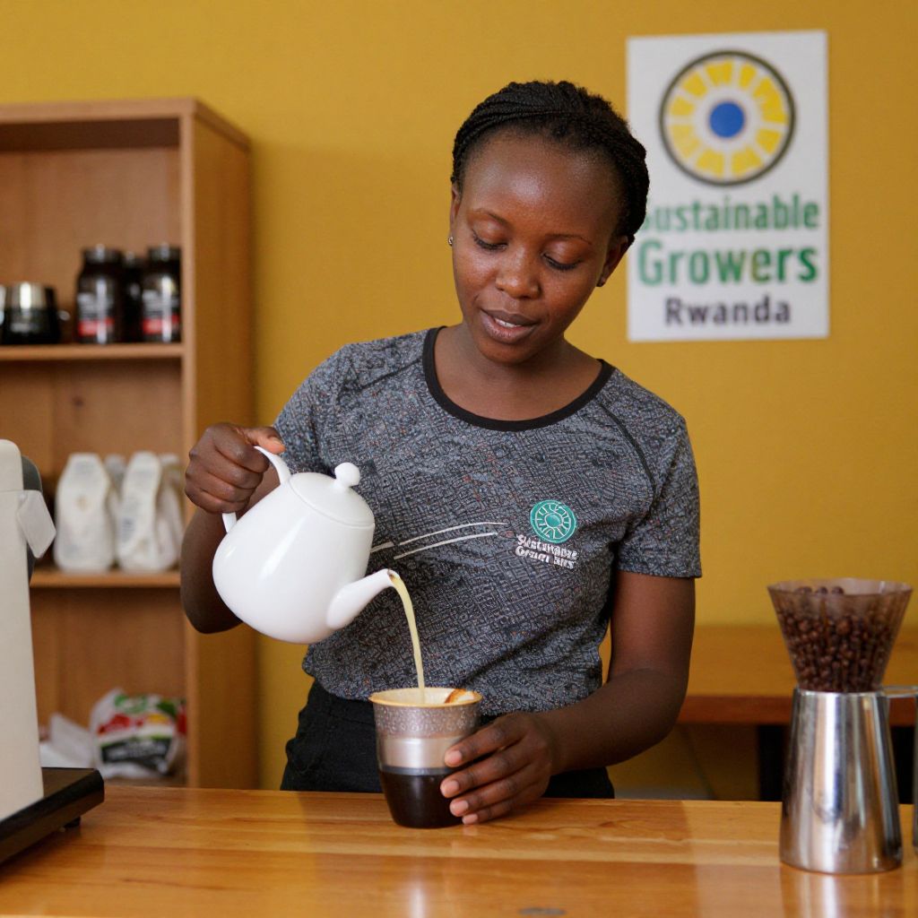 Perpetue Mukamusinga - Barista Training ManagerSustainable Growers Rwanda / Question Coffee CentreIn 2008, Perpetue began working at Bourbon coffee as head barista, later moving to Neo cafe as a coffee quality control in 2014. in 2016, she joined Sustainable Growers and Question Coffee a barista training manager. She was the first woman barista in Rwanda and has now been working in coffee for over 10 years. She is also certified by SCA in brewing and barista skills at the professional level.