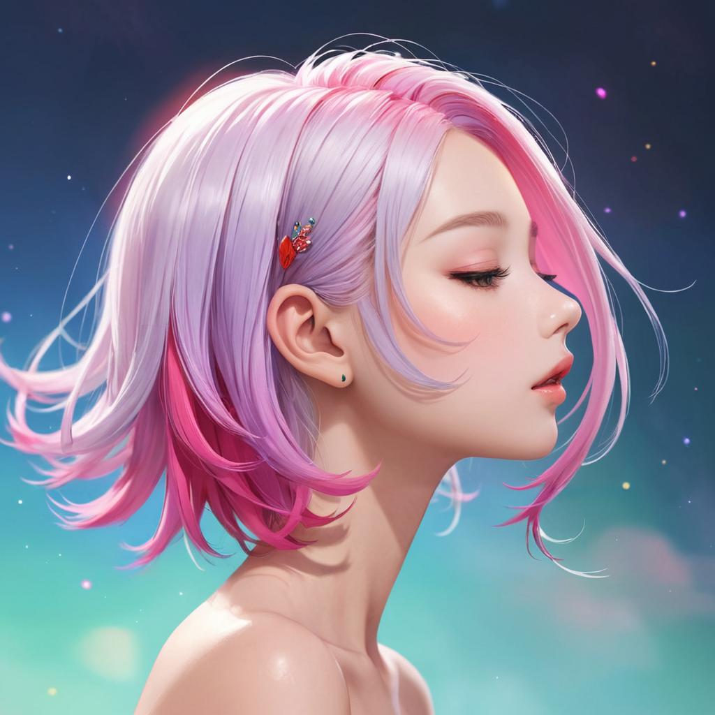 Pink-Haired Woman in Hoodie, Blue Eyes