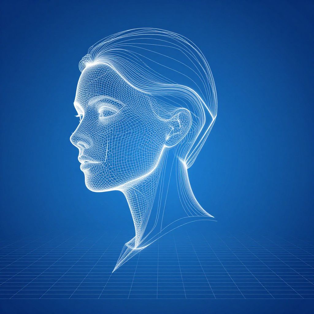 Georgette blue high tech mostly empty background image white lines powerpoint future womans face hexagons line art,