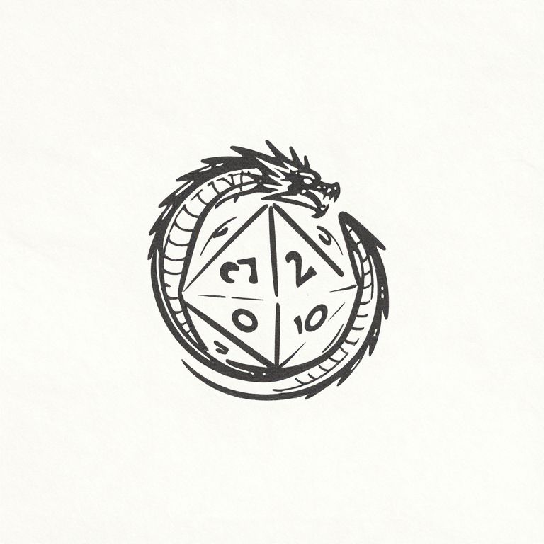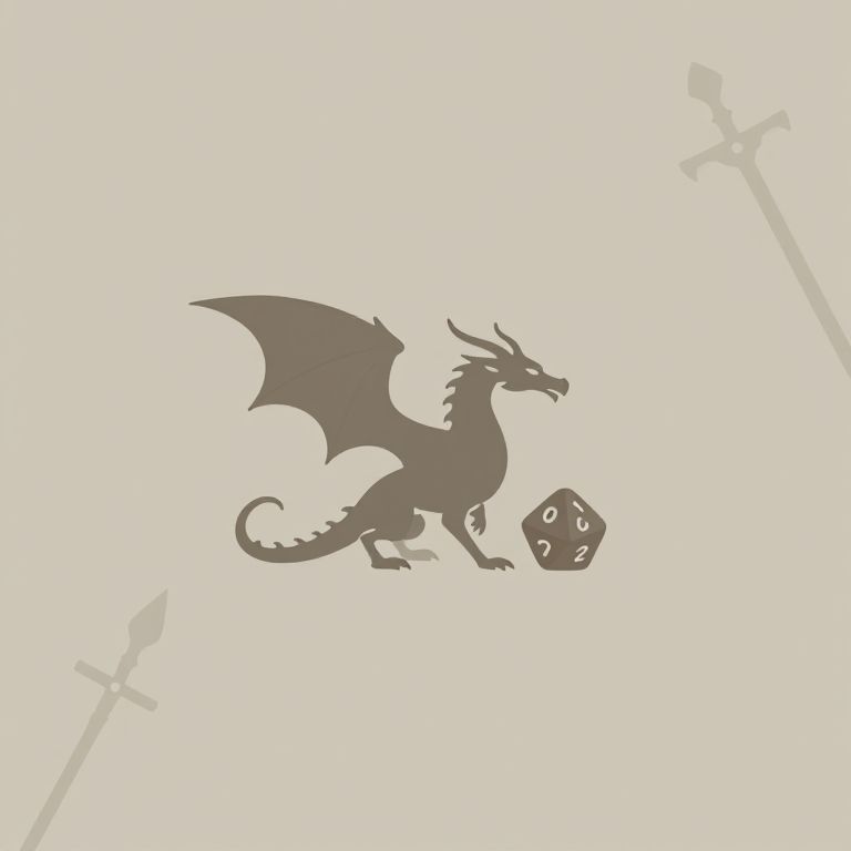 Minimalist D&D wallpaper featuring iconic fantasy elements like a simple dragon silhouette, a classic twenty-sided die, and subtle medieval weapon outlines in muted earth tones, perfect for a sleek tabletop gaming ambiance.