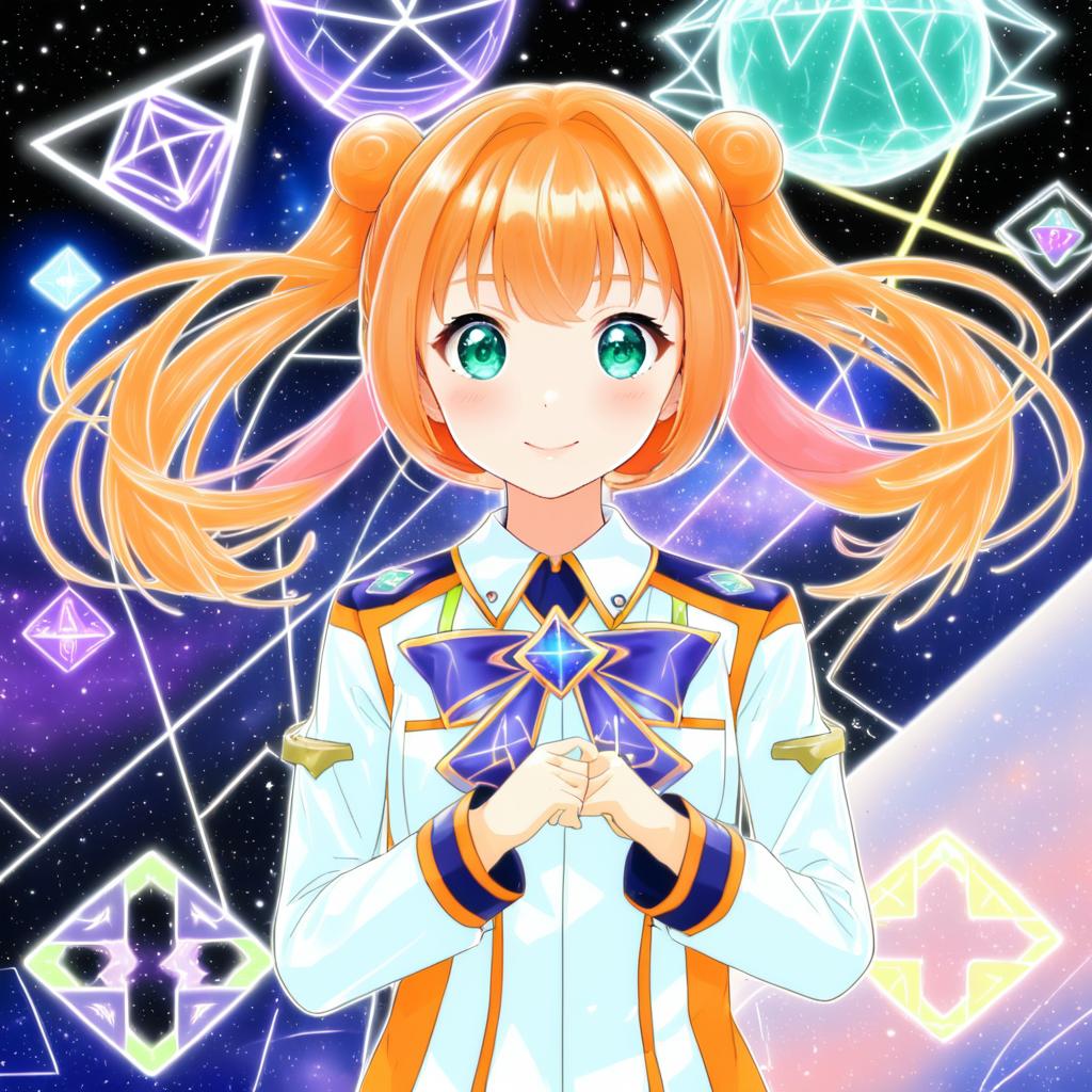 Apricot sakuraba, galaxy angel rune, 1girl, orange hair, short twintails, twintails, uniform, ribbon, long sleeves, by artist migihidari (puwako), anime