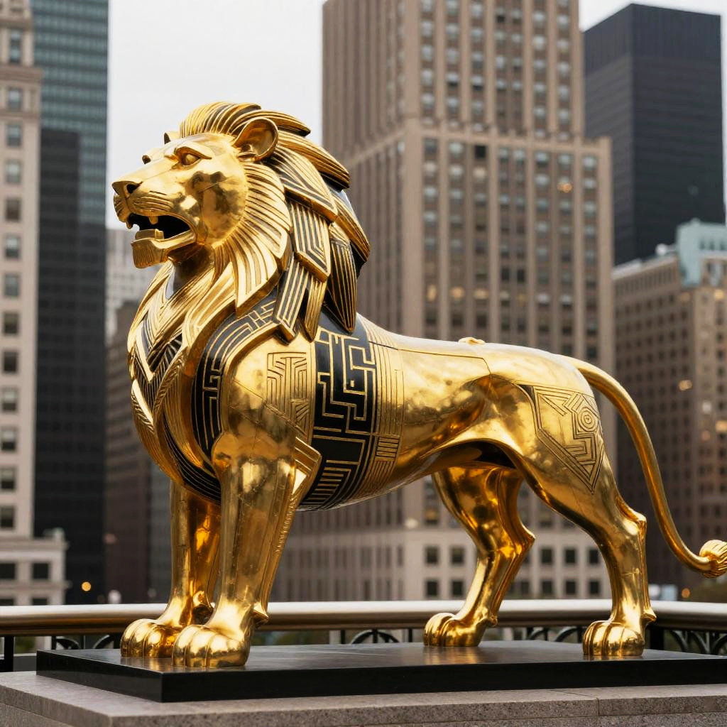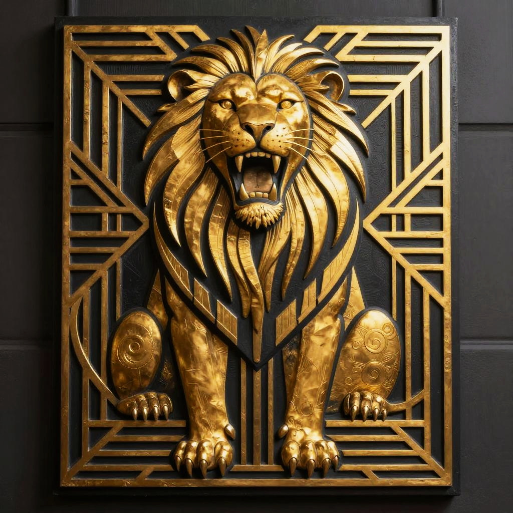 Art Deco Lion with Metallic Texture
