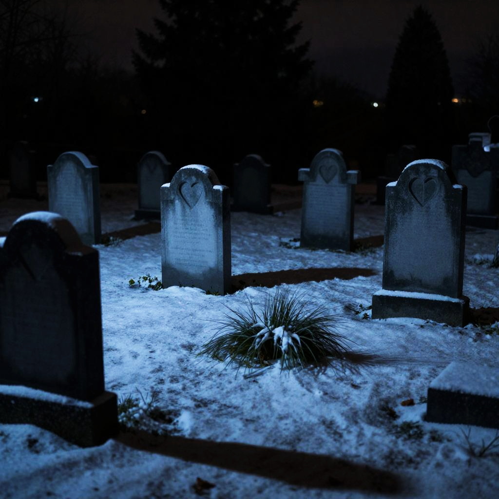 Eerie Winter Cemetery at Night