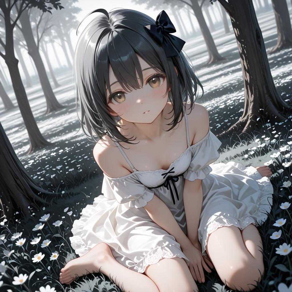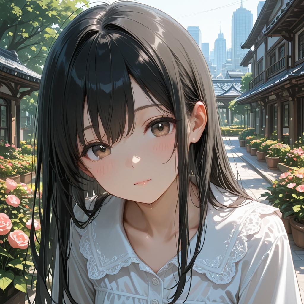 Anime Style Girl in Maid Dress Sitting on Stairs
