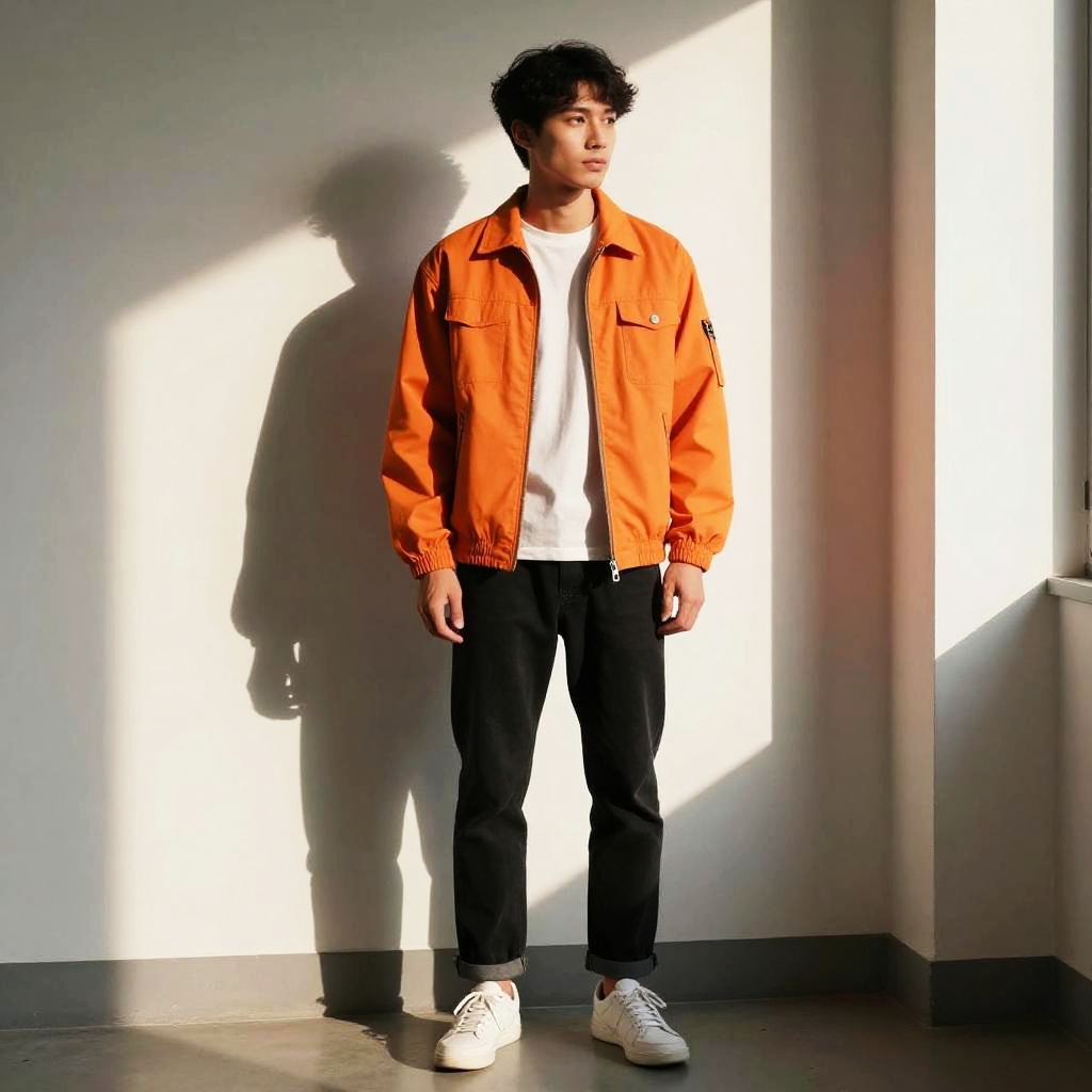 Sulley Costume Adult, man in a jacket and a t - shirt standing in a hallway --sref 1441