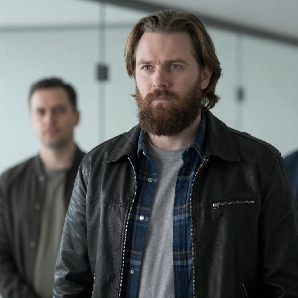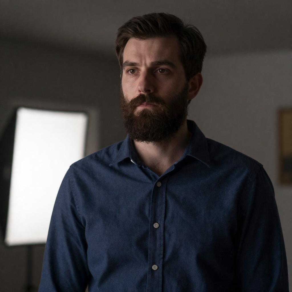 Bearded Man in Dim Industrial Hallway