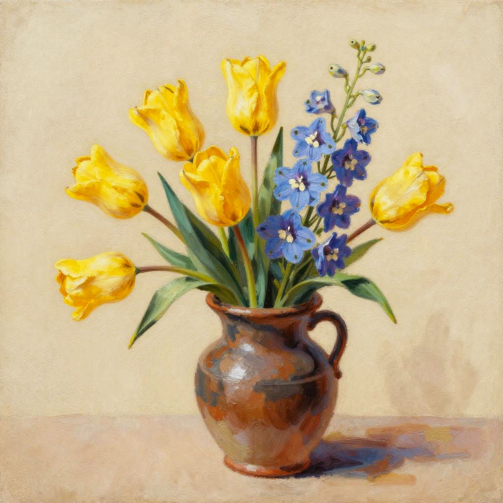 Still Life with Yellow Marigolds and Lavender