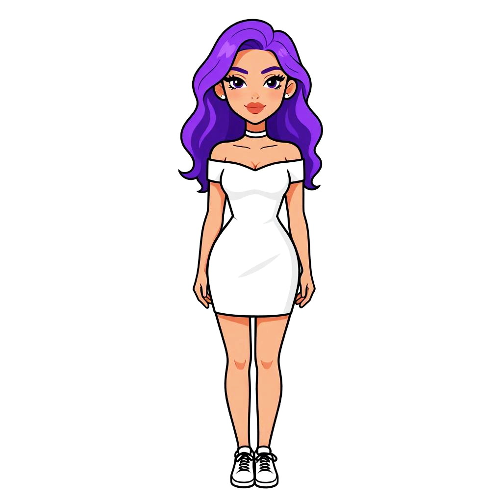 Woman with pretty face and pretty hair. Woman, understated chic, textured mid-length dress in a neutral beige tone, front knot detail at the chest, long fitted sleeves, straight-cut skirt, round neck, black lace-up sneakers, minimal jewelry, white studio background --sref 1467