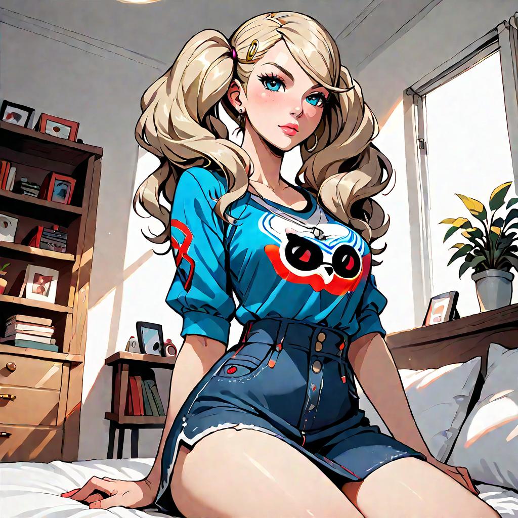 Score_9, score_8_up, score_7_up, (ultra hd quality details), anime, living room, Ann takamaki from persona 5 game, Vintage, 1990s \(style\)