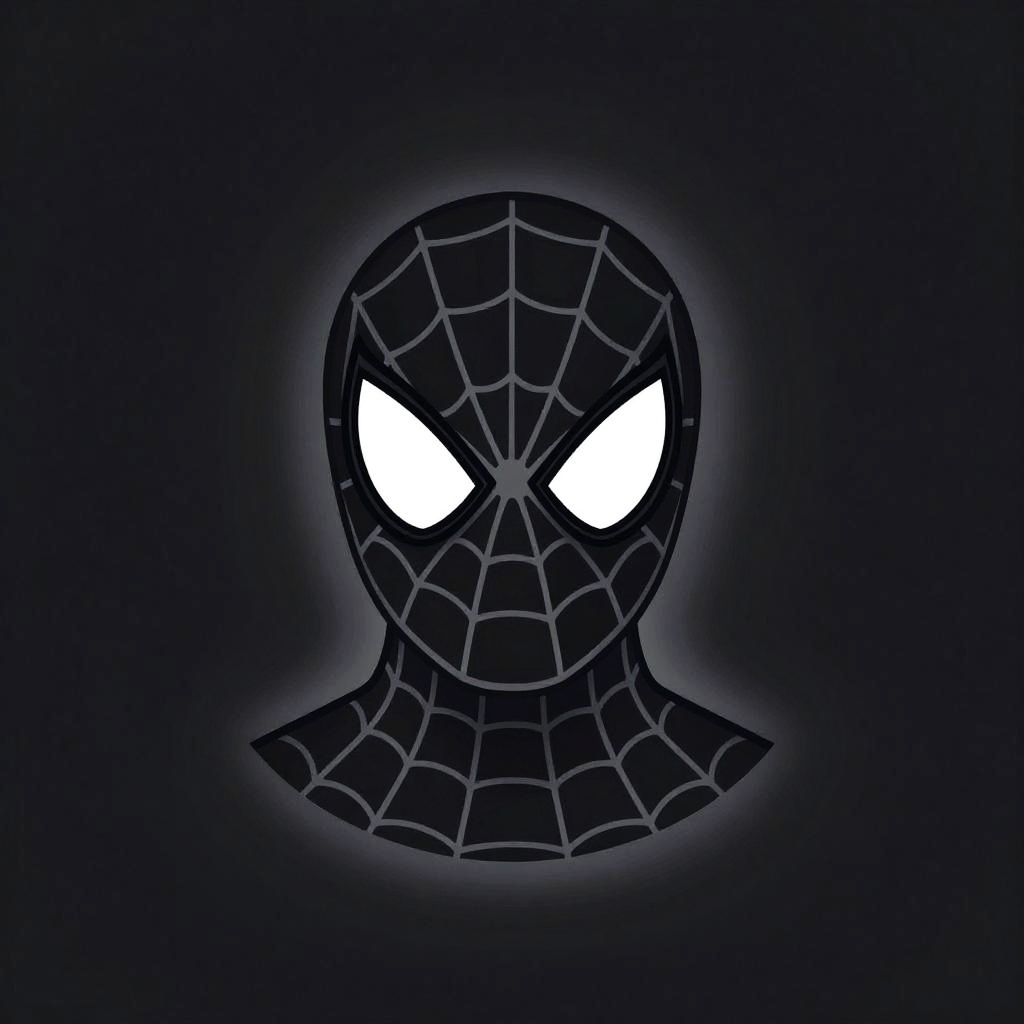 Spider Man profile picture illustrated in a minimalist yet striking style, emphasizing the iconic spider logo and mask details against a solid dark background, with a soft glow effect around the silhouette for a modern graphic design feel.