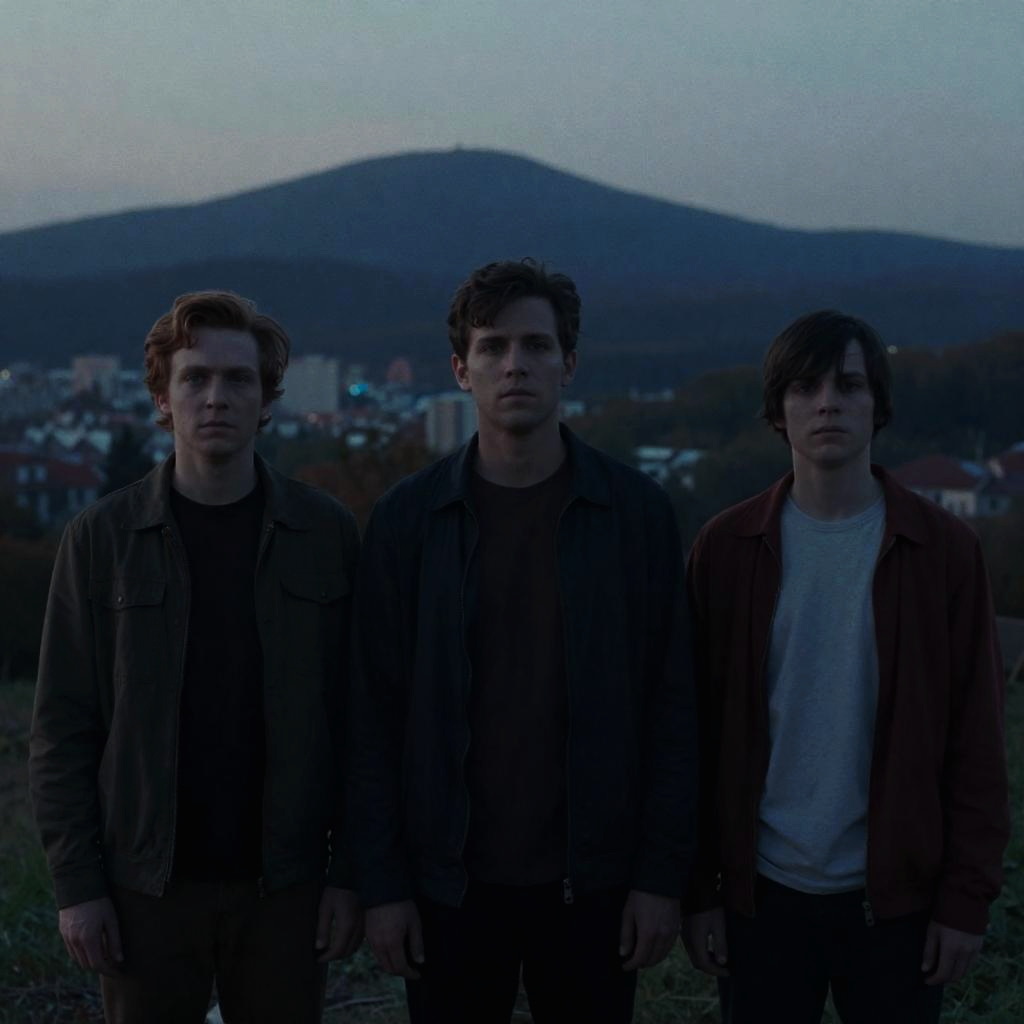 Art by Jeremy Lipking, Fran├зois De Nom├й and Ed Piskor, Portrait, Burgundy mountains, landscape of a Insecure (Cityscape:1.3), at Blue hour, Movie still, Tranquil, Orientalism Art, Cinestill, Ilford HP5, 50mm, anaglyph filter, slate atmosphere, cinematic, dimmed colors, dark shot, muted colors, film grainy, lut, spooky