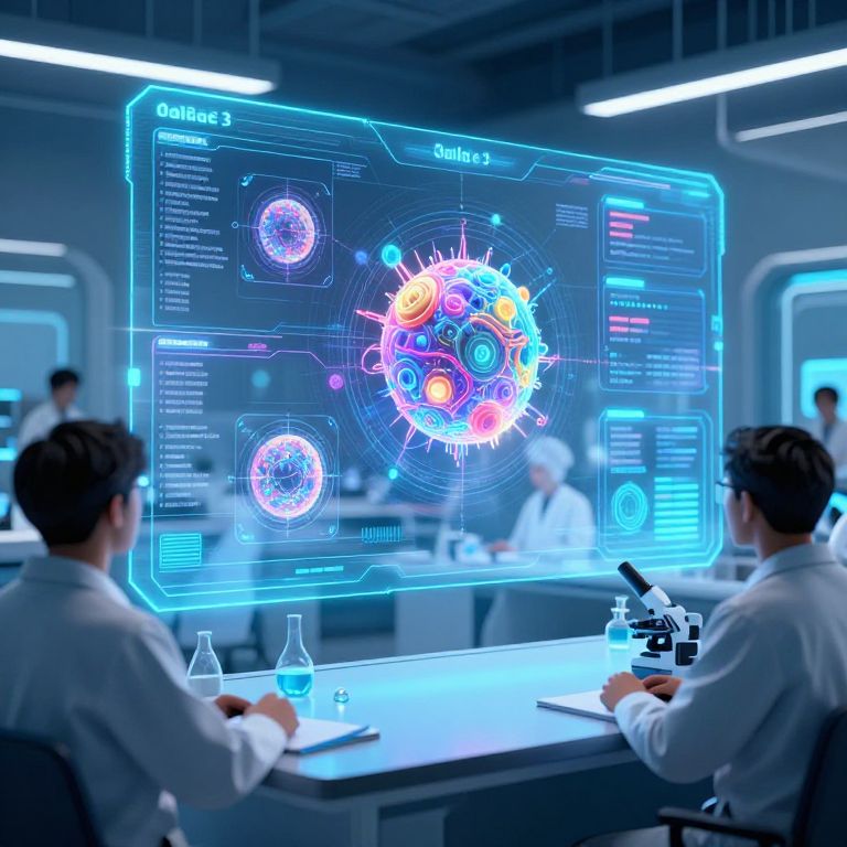 Dall-e 3 ai generating imaginative scenes from text prompts, depicted as a holographic interface emitting colorful 3D images in a sleek modern lab, surrounded by scientists observing, sci-fi environment with high detail and depth