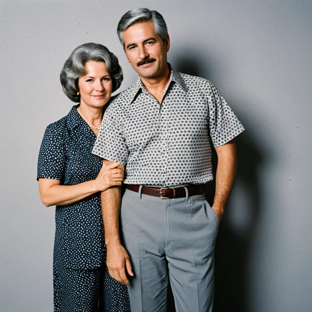 Vintage 1970s Middle-Aged Couple in Patterned Outfits