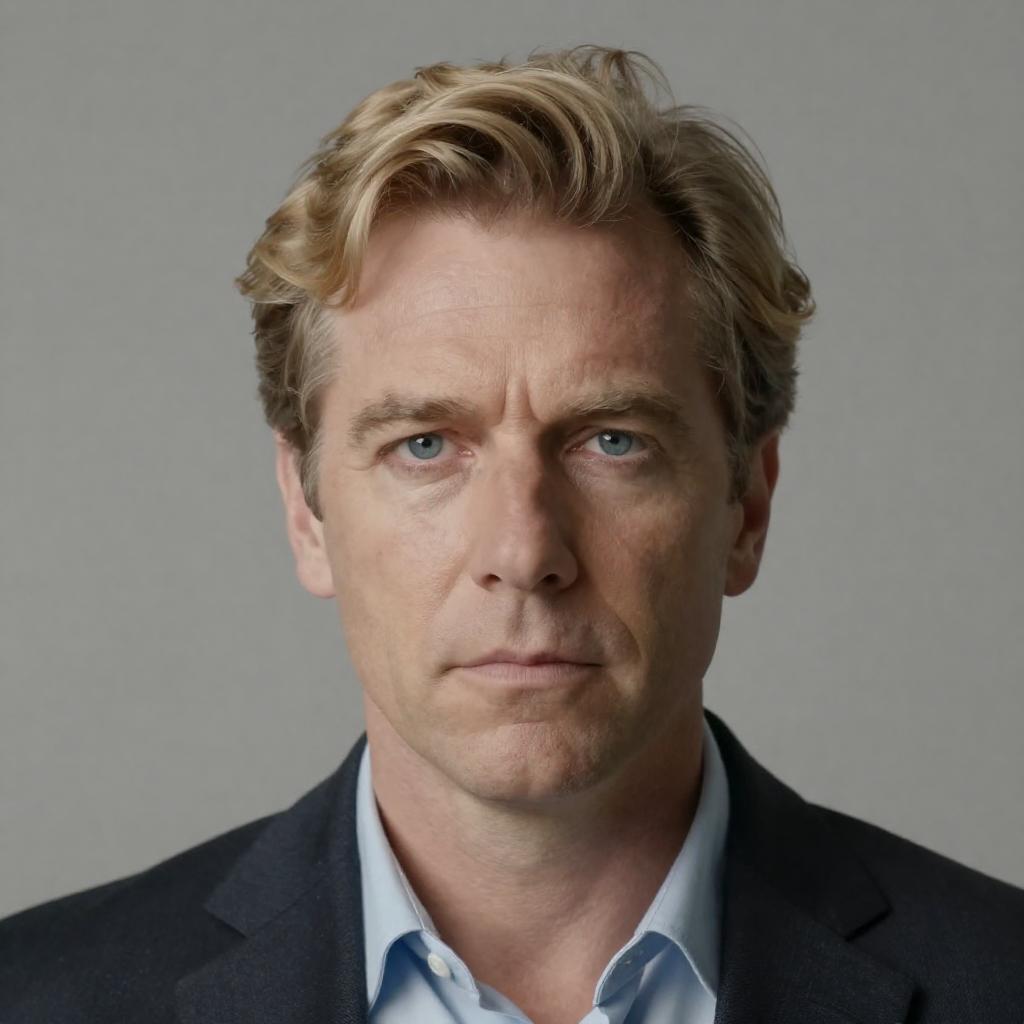 Close-up photograph of a middle-aged white man with wrinkles, blue eyes, short brown hair, and a slightly furrowed brow. He is wearing a white shirt, looking intently forward. His expression is serious and focused.