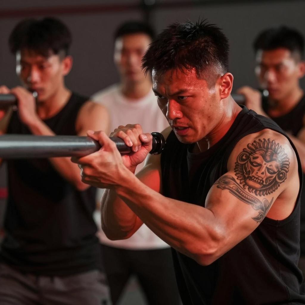 Intense Fighter in Industrial Setting