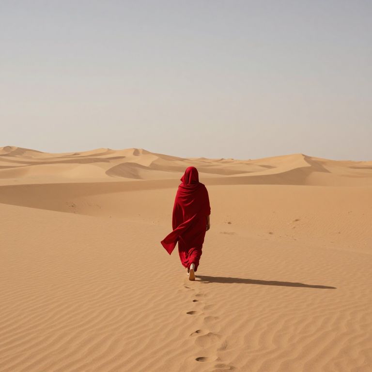 Solitary Walk on Golden Desert Dunes