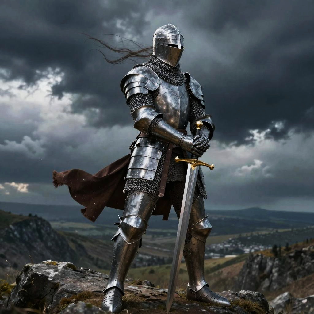 Medieval Knight in Misty Forest