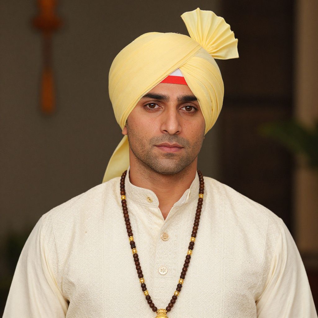 Bollywood Theme Party Male Costume, a close up of a man wearing a turban and a necklace