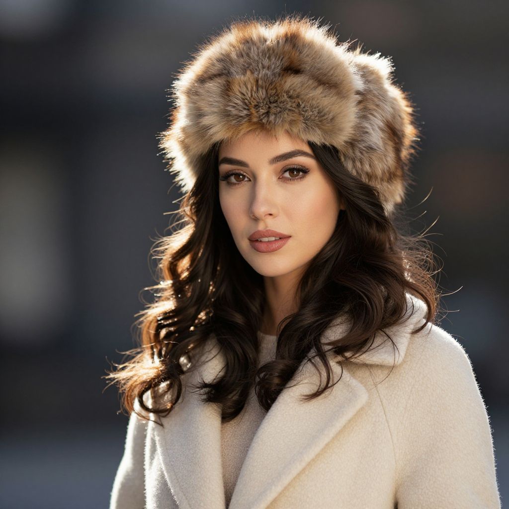 Elegant Woman in Coat and Fur Hat