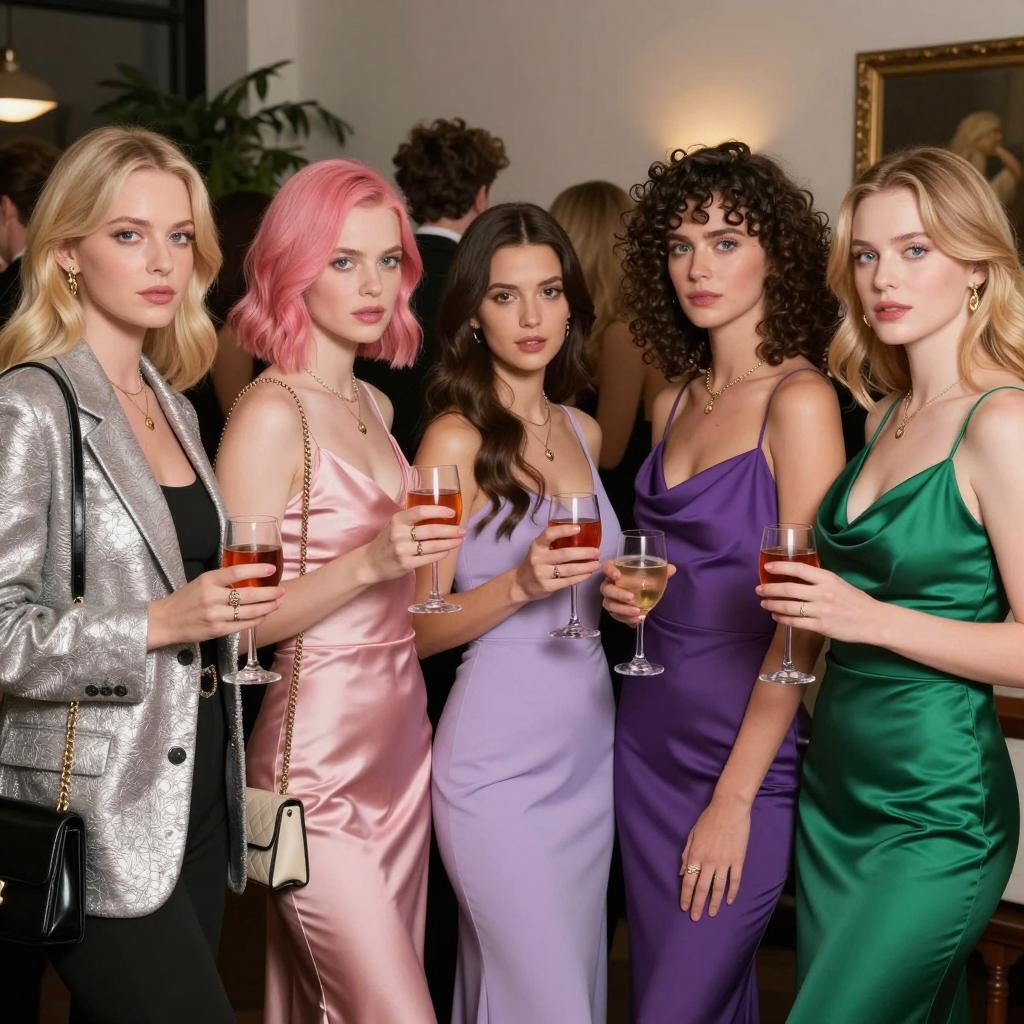 Elegant Night Out: Three Women in Bar